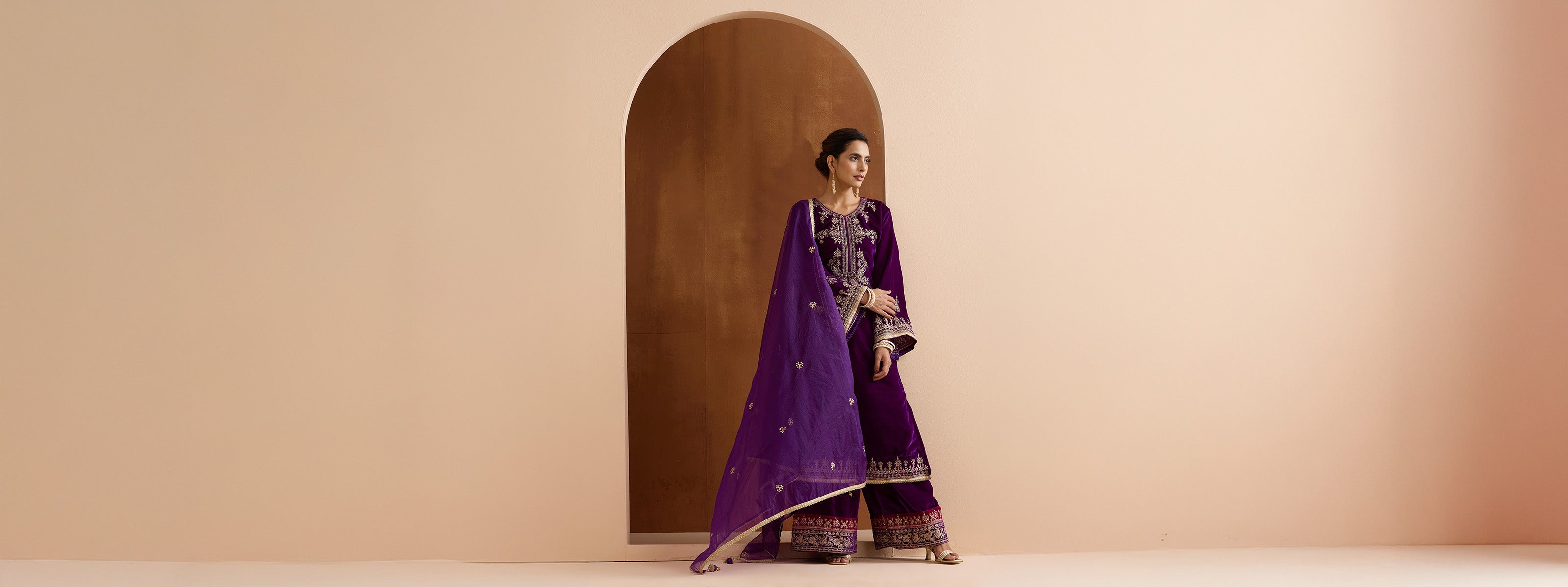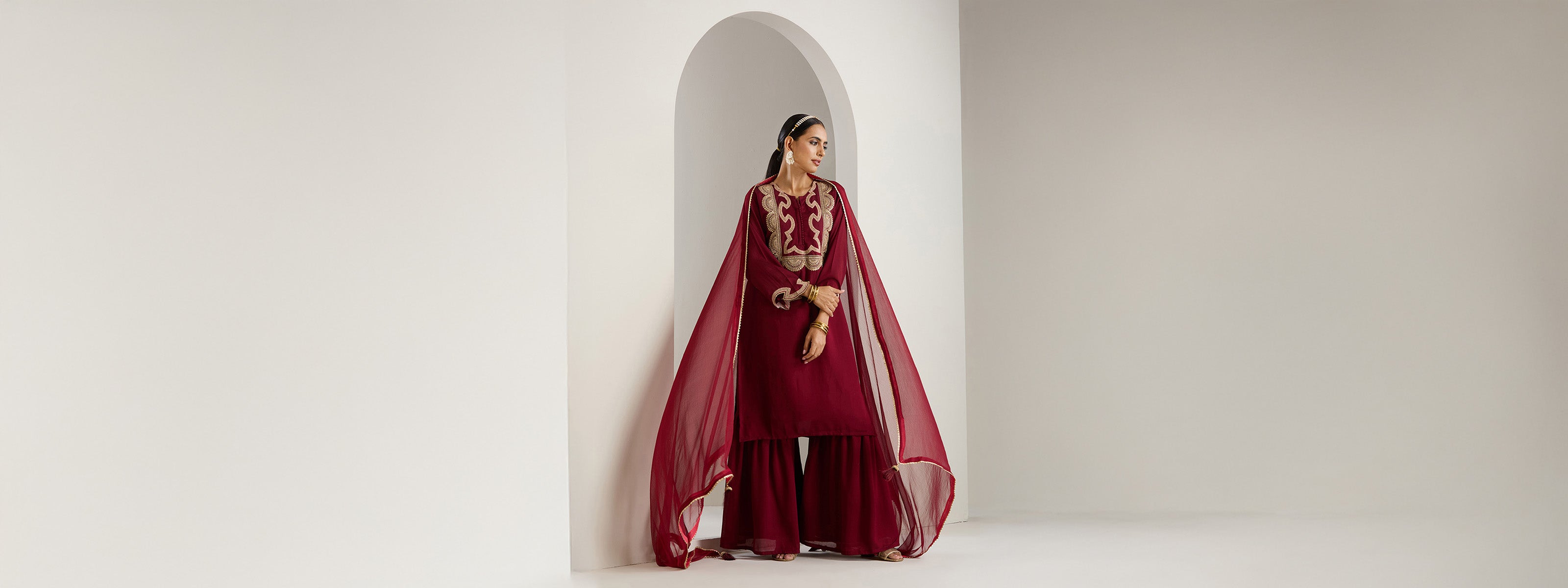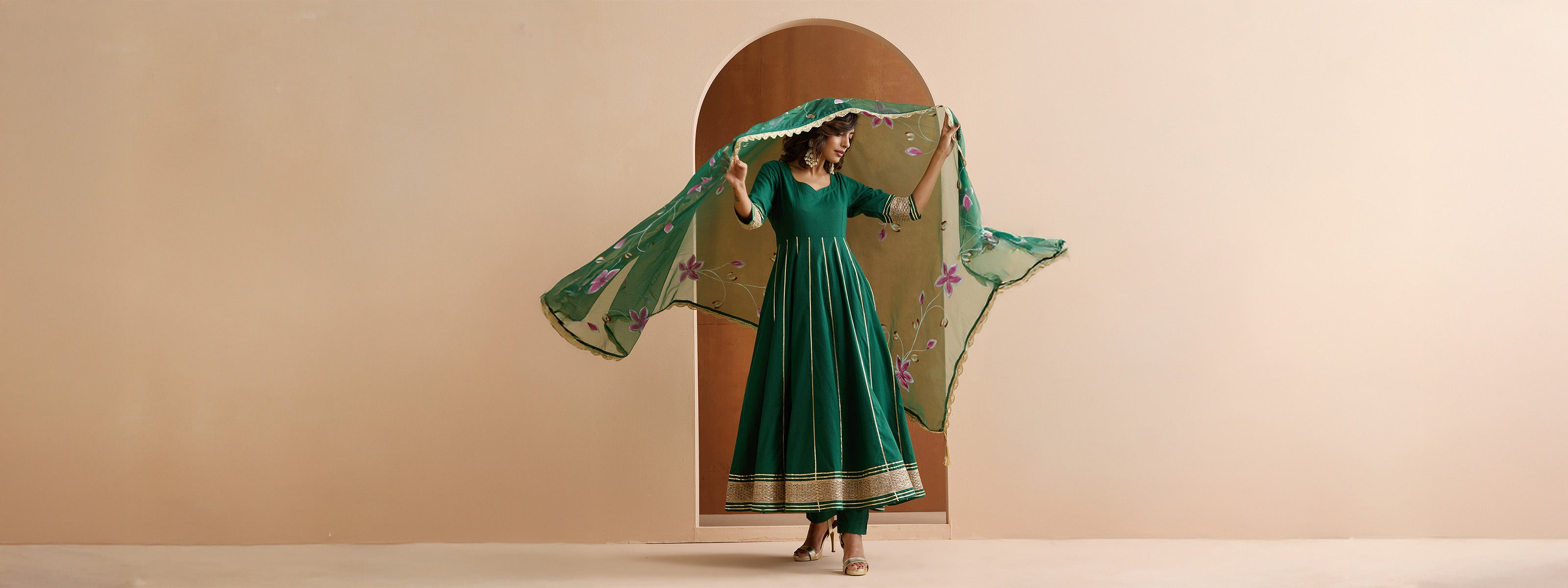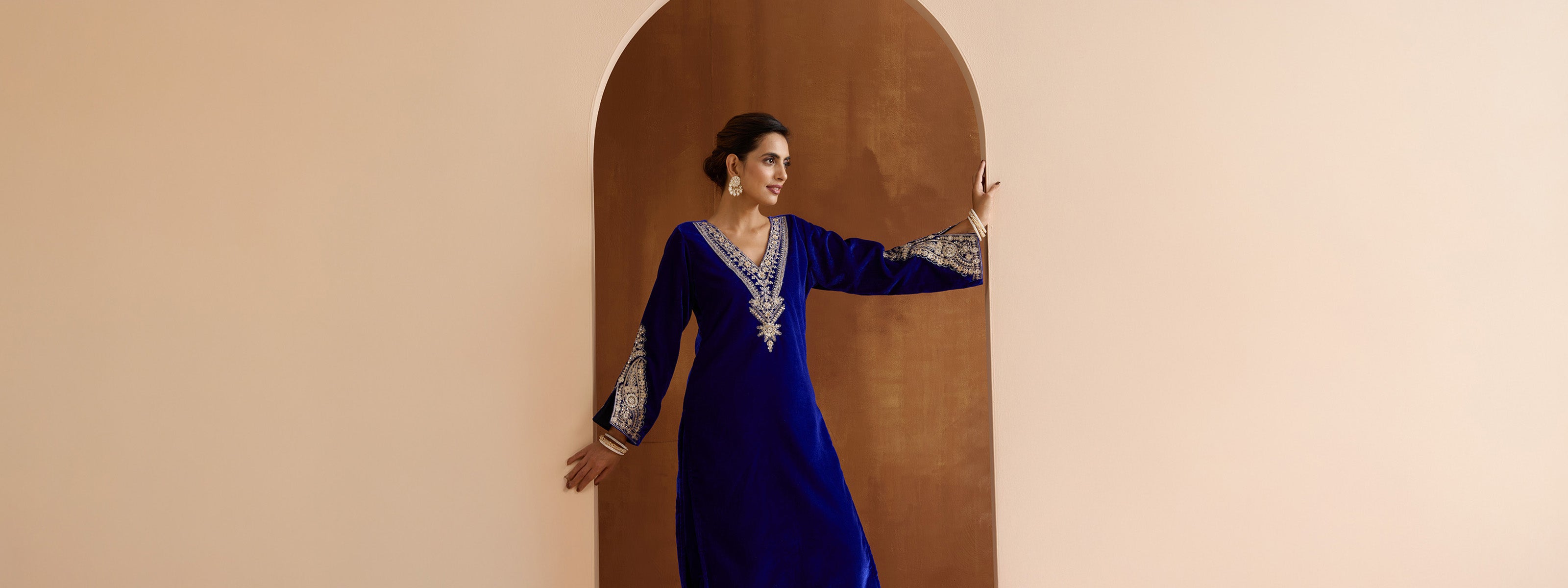 Elevate your style with statement kurta sets and dresses that blend contemporary designs with timeless elegance